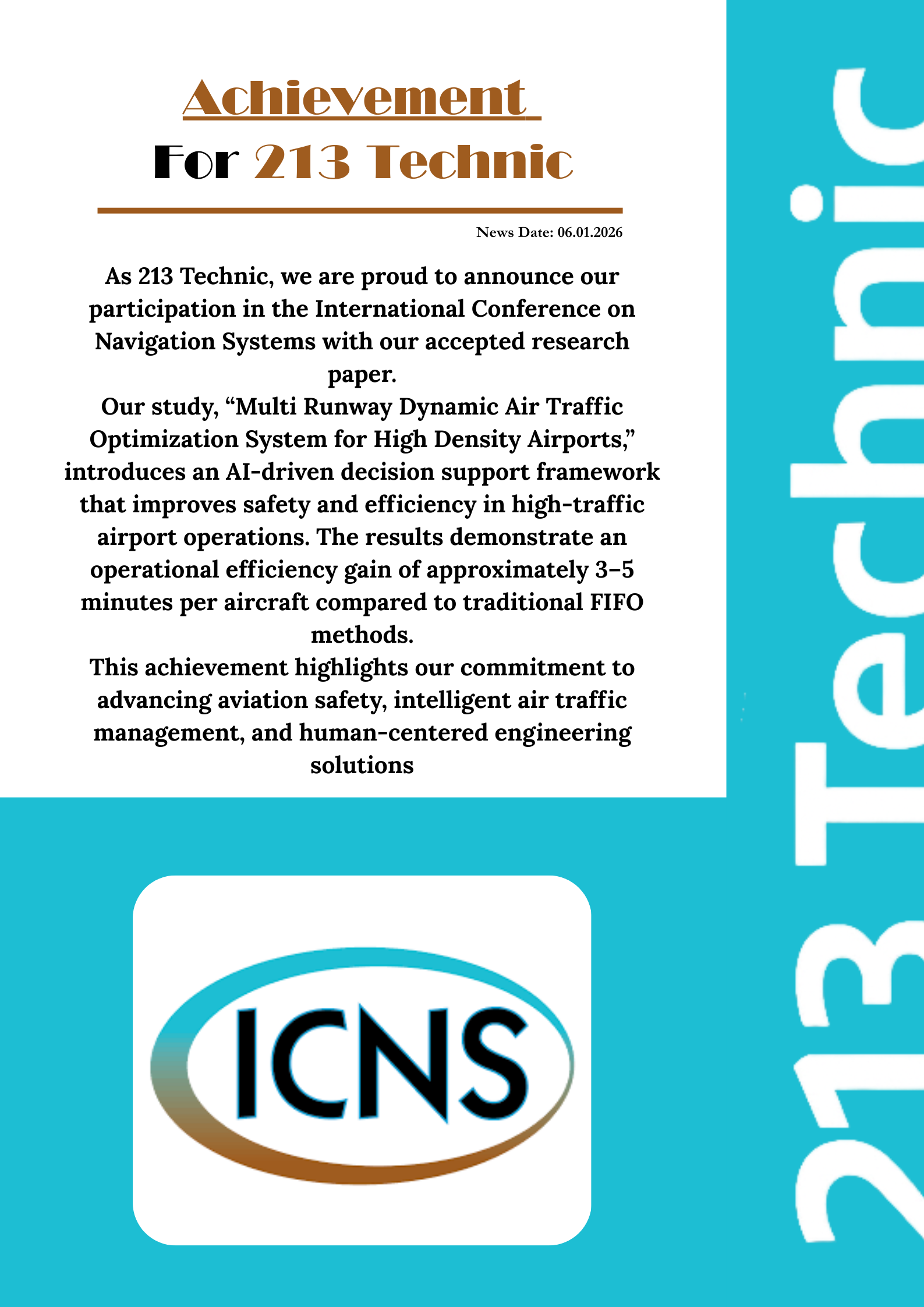 Our AI-driven air traffic optimization framework has been accepted by the International Conference on Navigation Systems (ICNS). We remain committed to improving aviation safety and efficiency.
